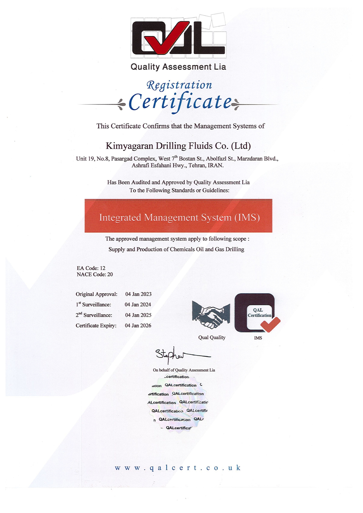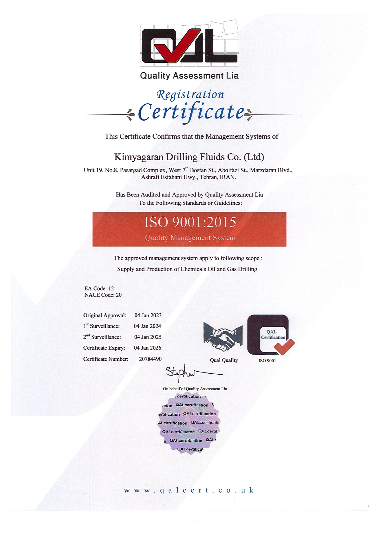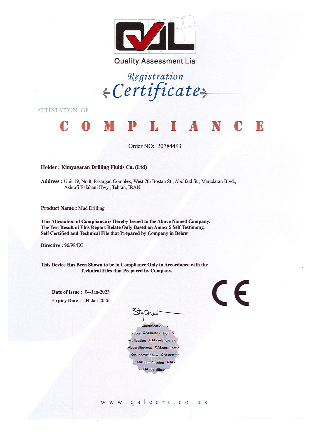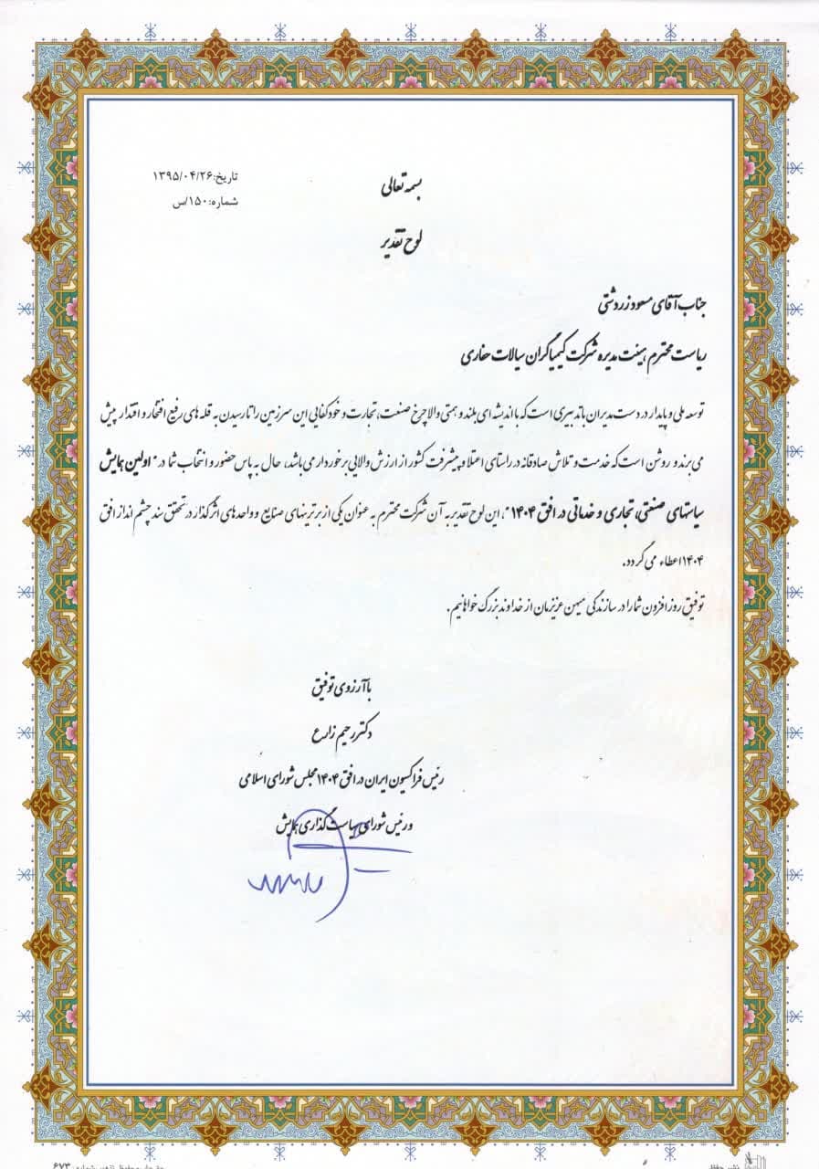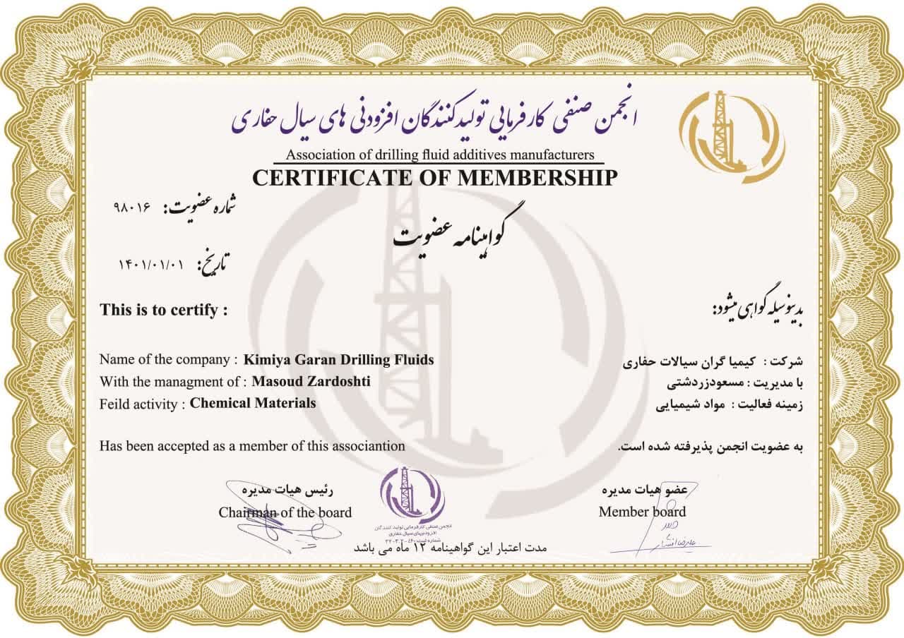 Kimyagaran Drilling Fluids Holding registered a trading company in the United Arab Emirates, leading in the import and export of chemicals, petrochemicals, and minerals in the Persian Gulf countries and neighboring countries.